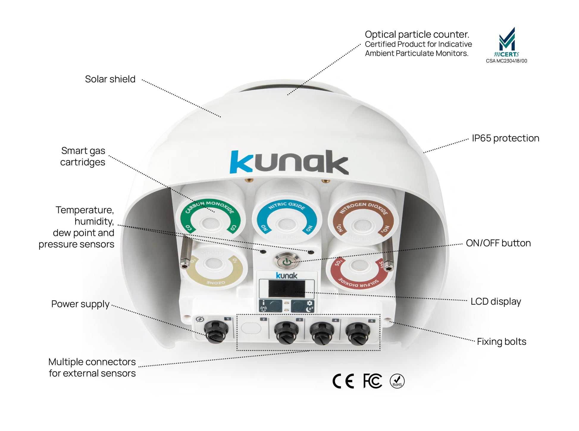 The Kunak AIR Pro is a high-performance, sensor-based air quality monitor designed for real-time, multi-pollutant measurement in urban, industrial, and environmental settings. It delivers reference-grade accuracy, complying with European and U.S. EPA standards.